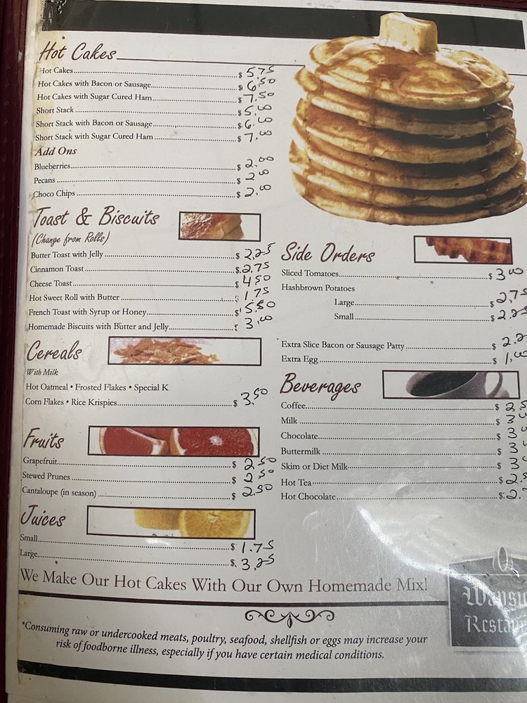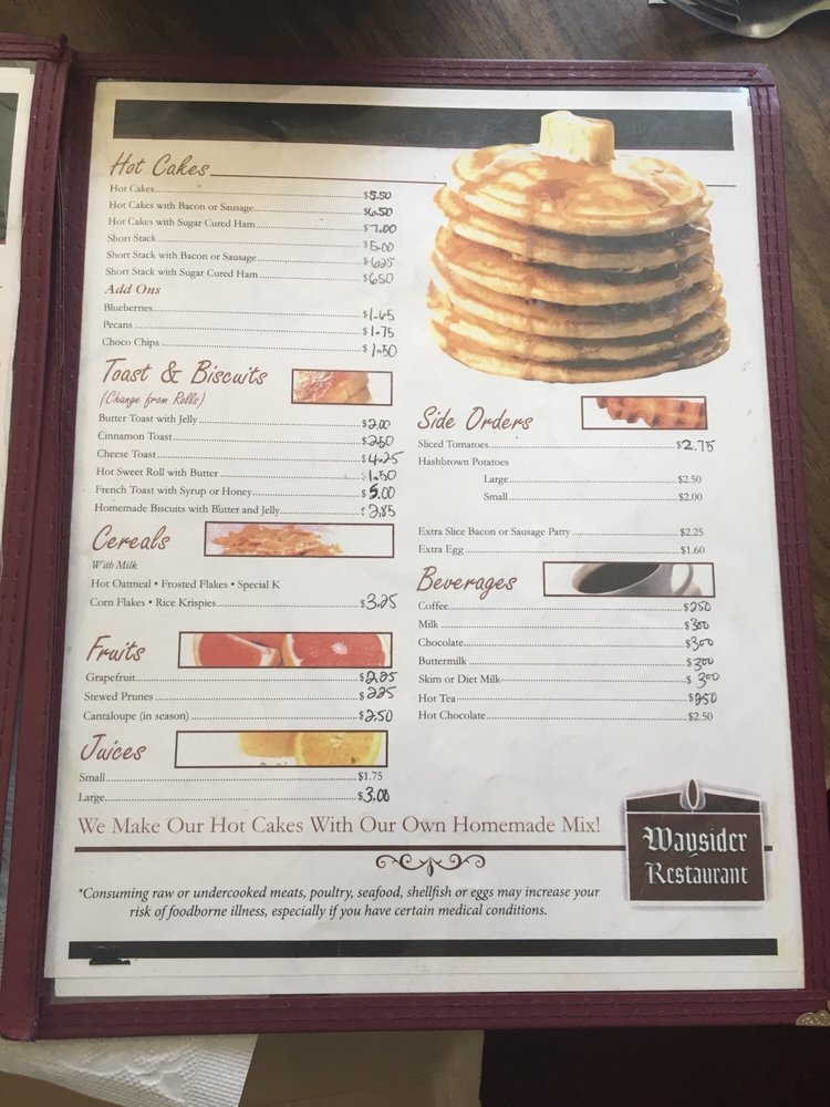 Add a burst of freshness with a side of Grapefruit or tangy Stewed Prunes, making your meal both nutritious and delicious. At Waysider Restaurant, every dish is crafted with care, ensuring a memorable dining experience that keeps you coming back for more.